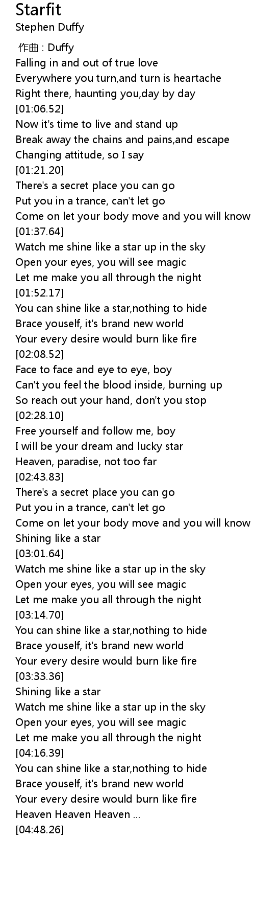 | [04:18.43] | You can shine like a star, nothing to hide |