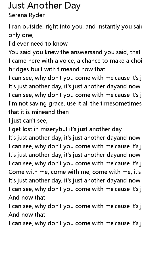I can see, why don't you come with me'cause it's just another day. |