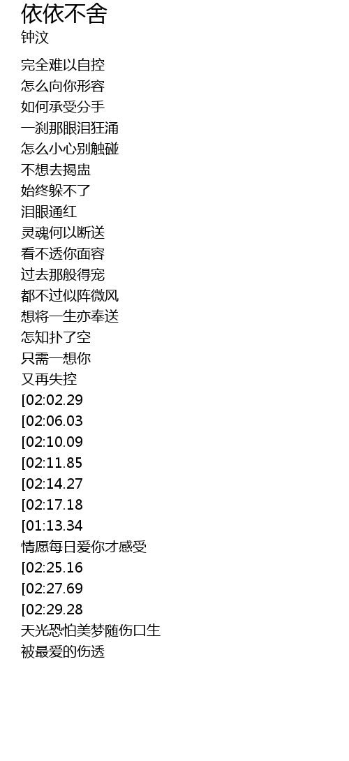 | [02:49.58][02:02.29][00:54.83] | 依依不舍告别了温柔 |