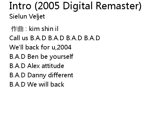| [00:29.60] | Call us B. A. D B. A. D B. A. D B. A. D |