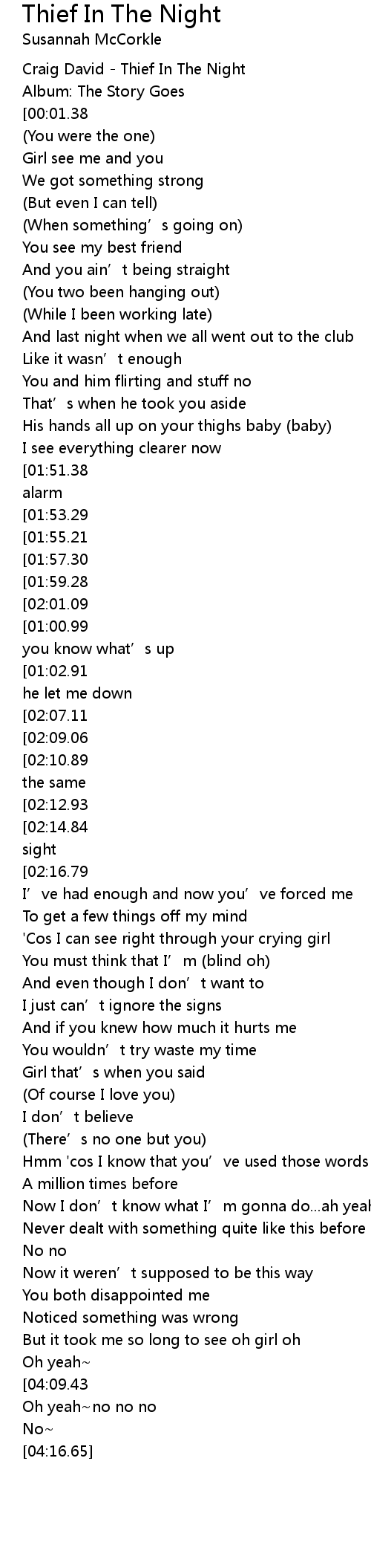| [00:00.00] | Craig David - Thief In The Night |