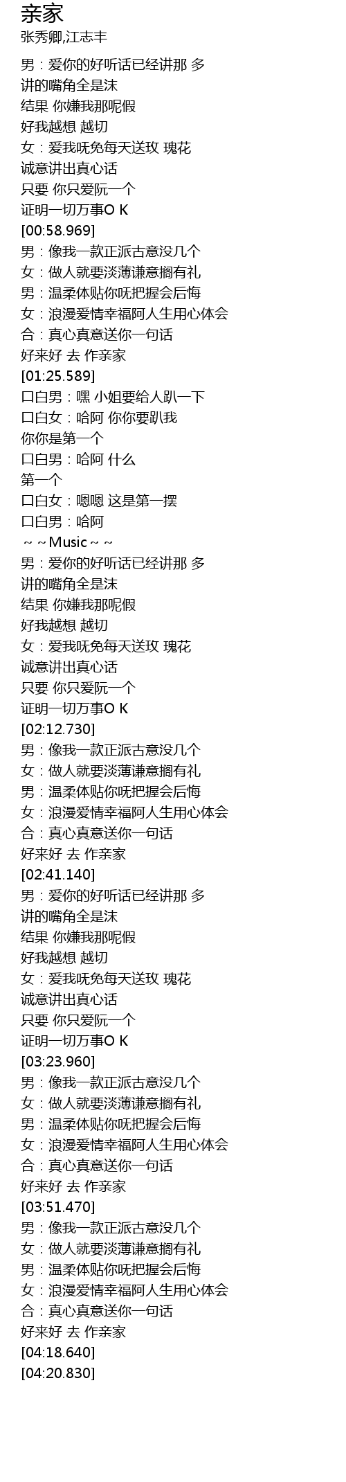 | [01:18.719] | 好来好 去 作亲家 |