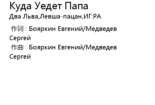 | [00:00.00-1] | 作词 : Бояркин Евгений/Медведев Сергей |