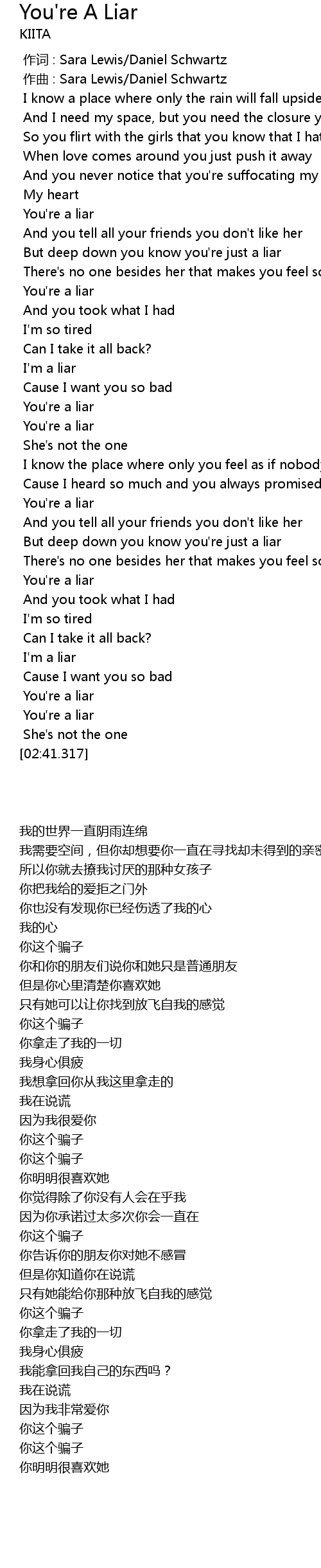 | [02:20.362] | You' re a liar |