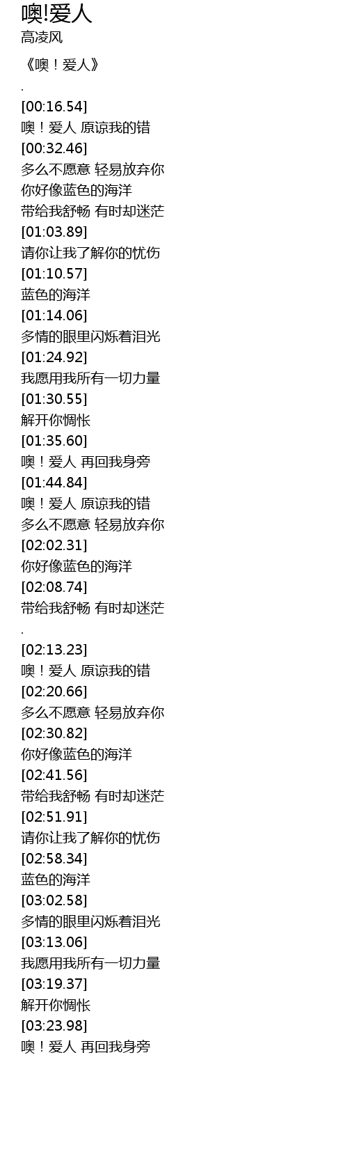 | [03:28.60] | 噢!爱人 再回我身旁 |