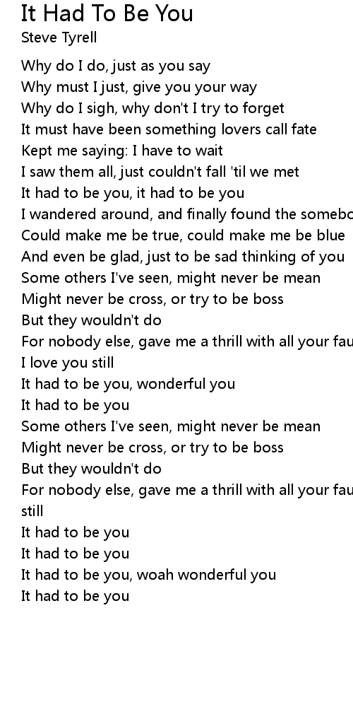 It had to be you, it had to be you |