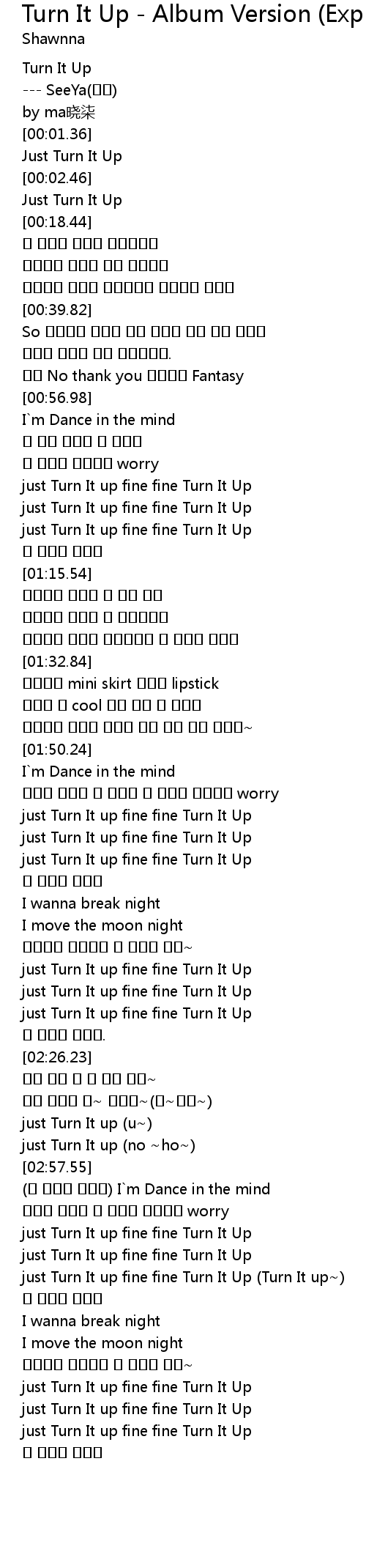 | [02:21.28] | just Turn It up fine fine Turn It Up |
