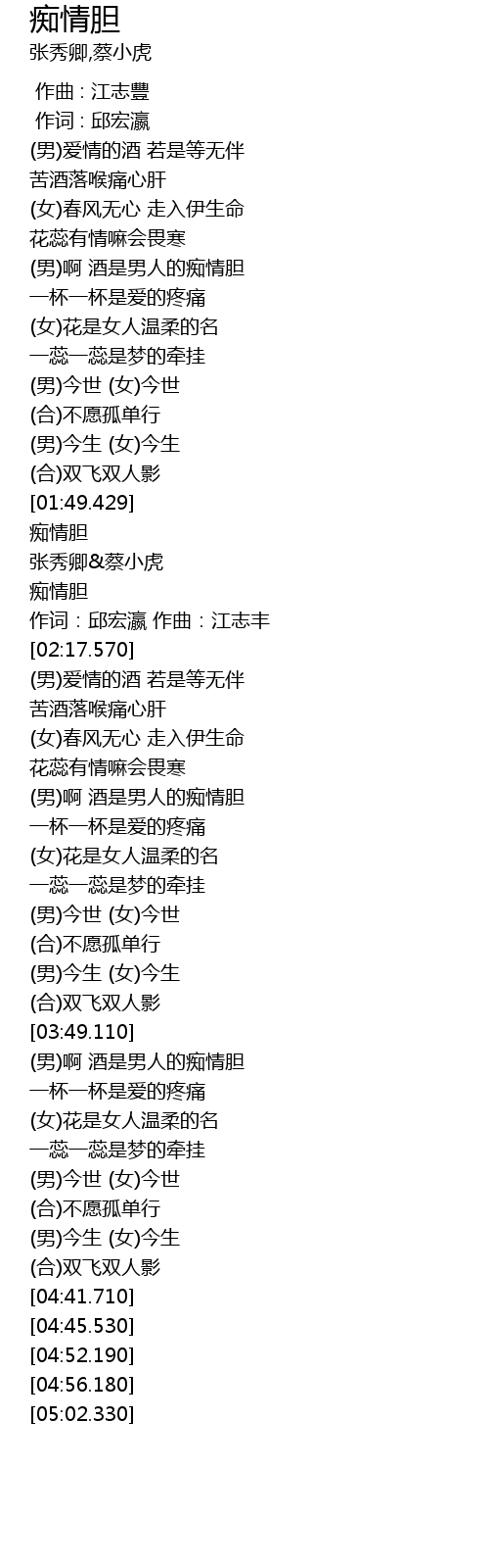 | [02:22.930] | (男)爱情的酒 若是等无伴 |