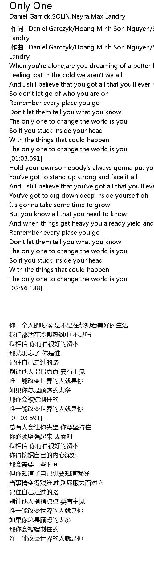 | [00:57.668] | The only one to change the world is you |