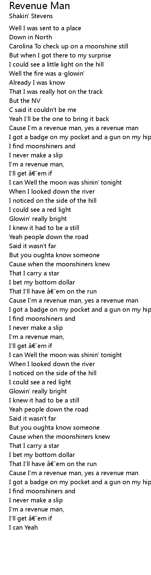 | Cause I'm a revenue man, yes a revenue man | |