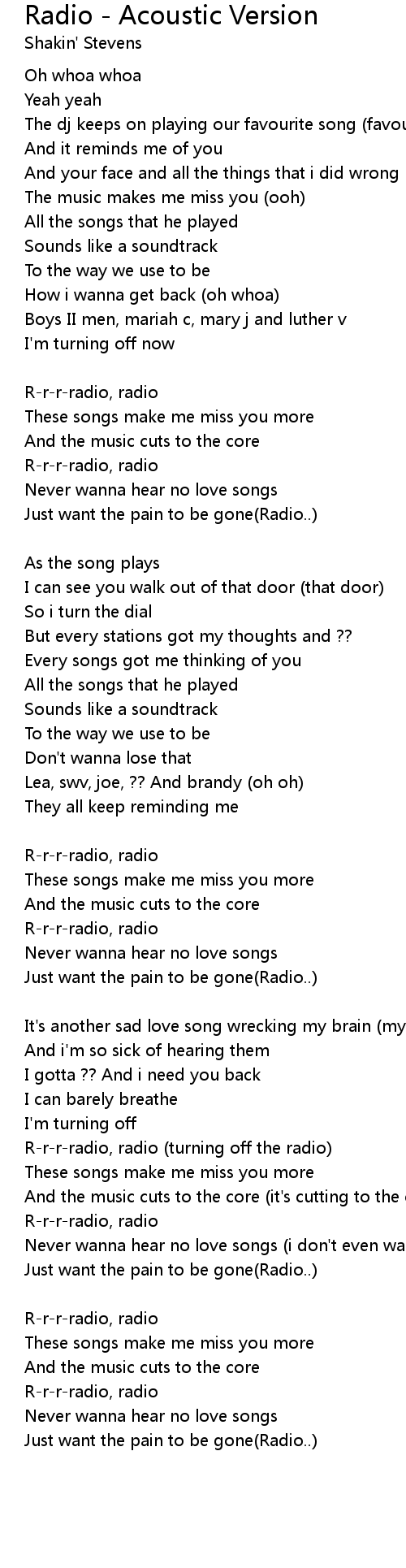 R-r-r-radio, radio (turning off the radio) |