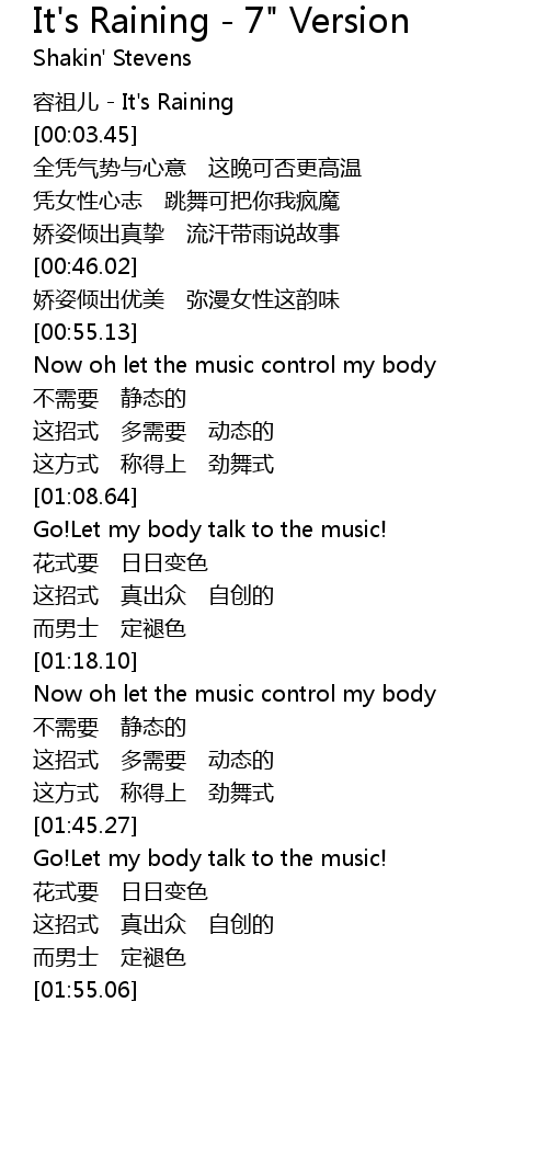 | [00:59.73] | Now oh let the music control my body |