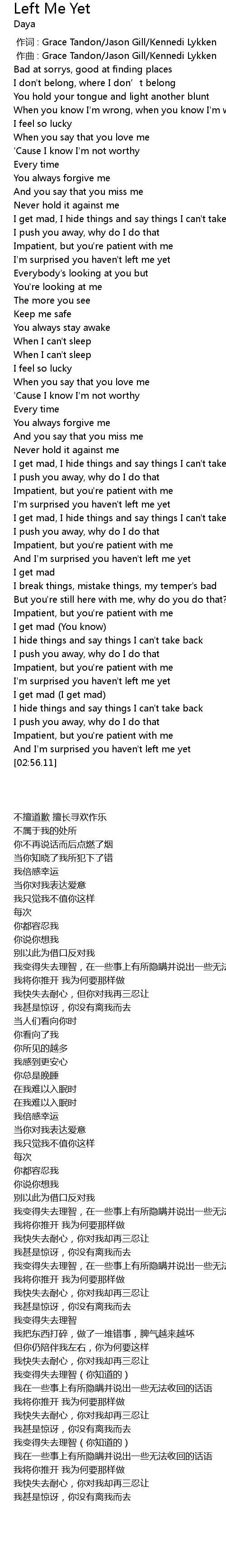 | [00:55.88] | I' m surprised you haven' t left me yet |