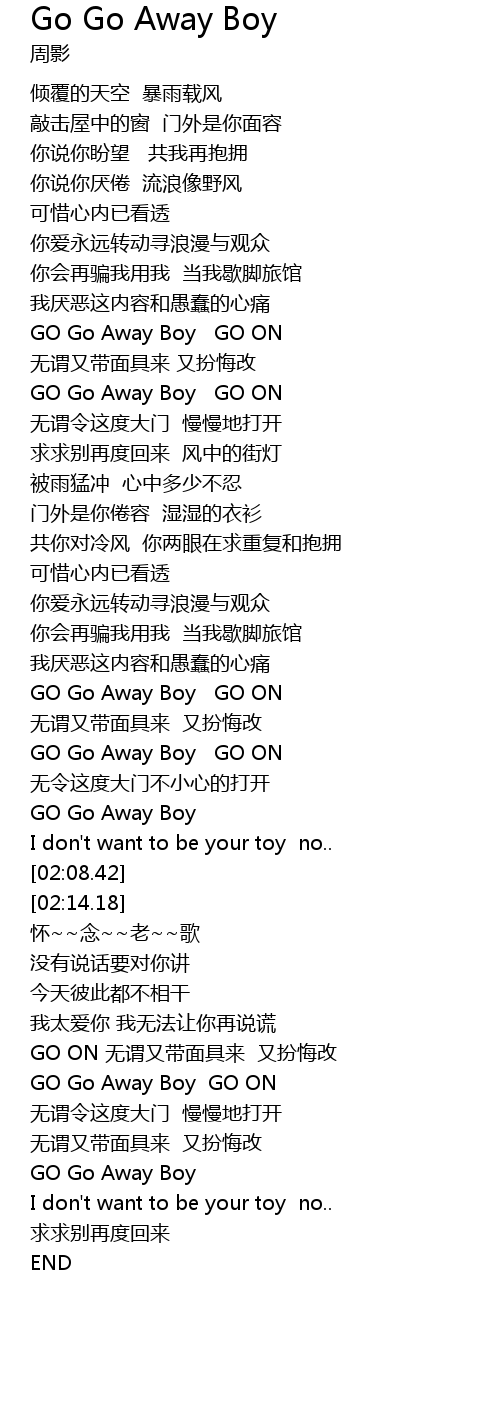 | [02:39.53] | GO ON 无谓又带面具来 又扮悔改 |