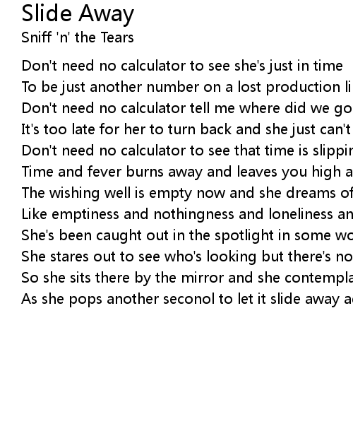 As she pops another seconol to let it slide away again - slide away |