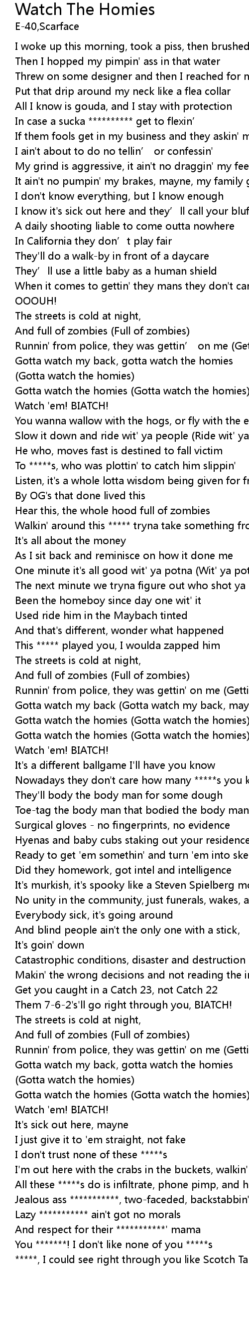 | [03:10.46] | Gotta watch the homies Gotta watch the homies |