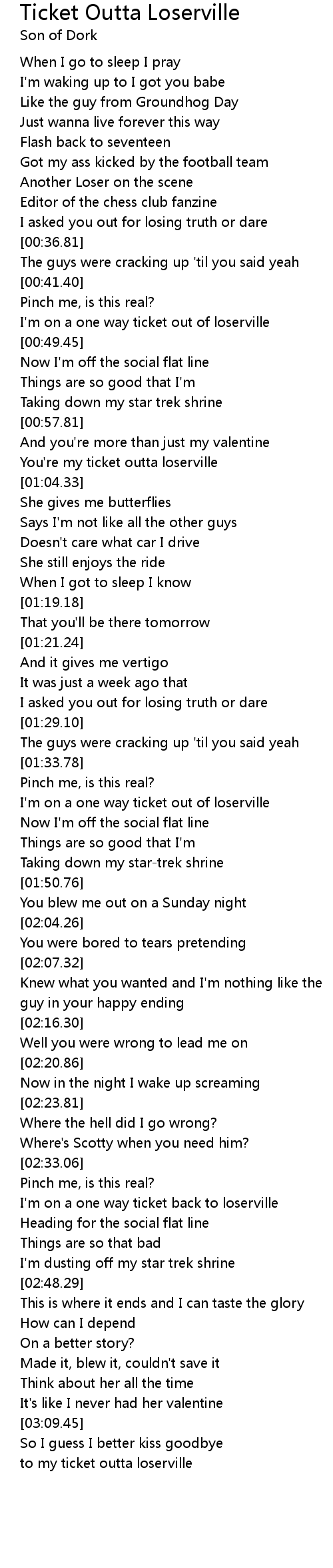You're my ticket outta loserville |