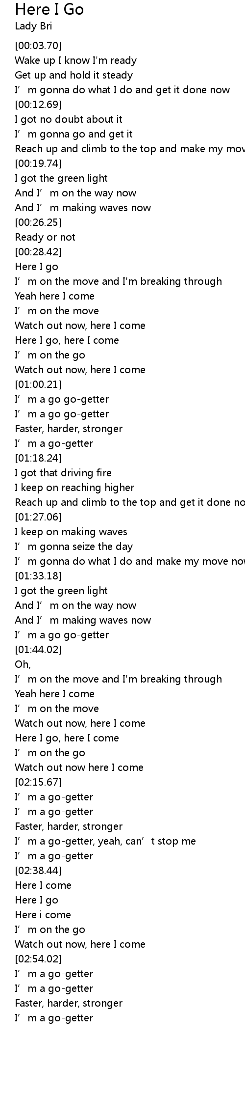 | [00:48.79] | Here I go, here I come |