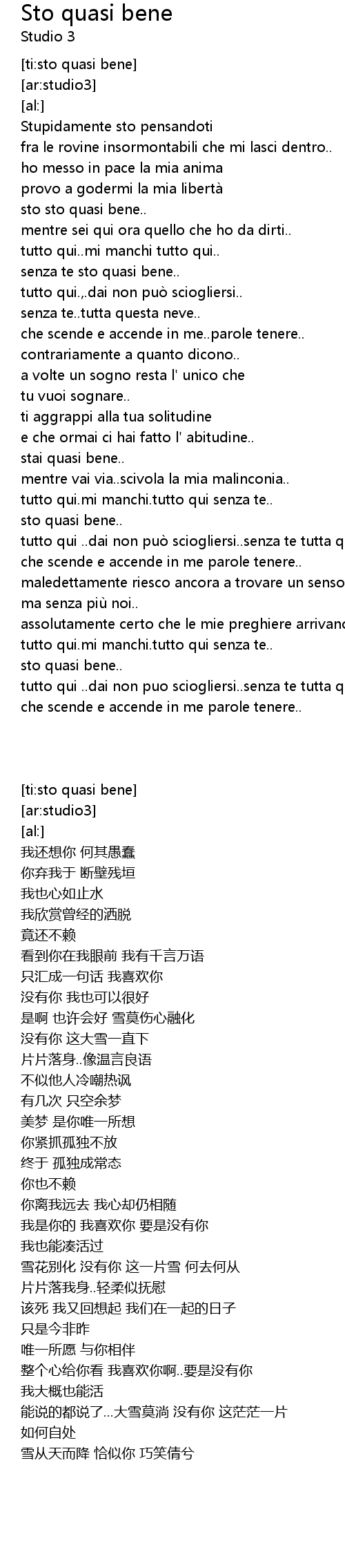 | [02:14.82] | tutto qui .. dai non puo sciogliersi.. senza te tutta questa neve.. |