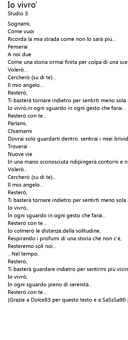| Io vivro, in ogni sguardo in ogni gesto che farai... | |