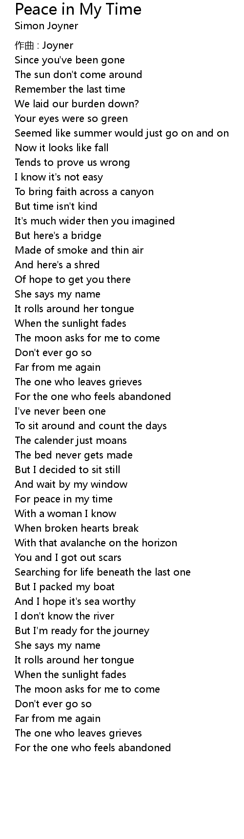 | Song | Peace in My Time |