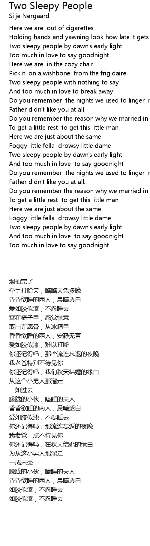And too much in love to say goodnight |
