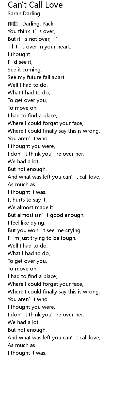 | Song | Can't Call Love |