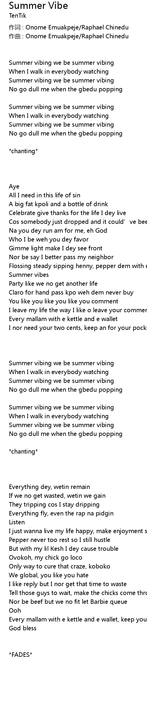 | 作词 : Onome Emuakpeje/Raphael Chinedu | |