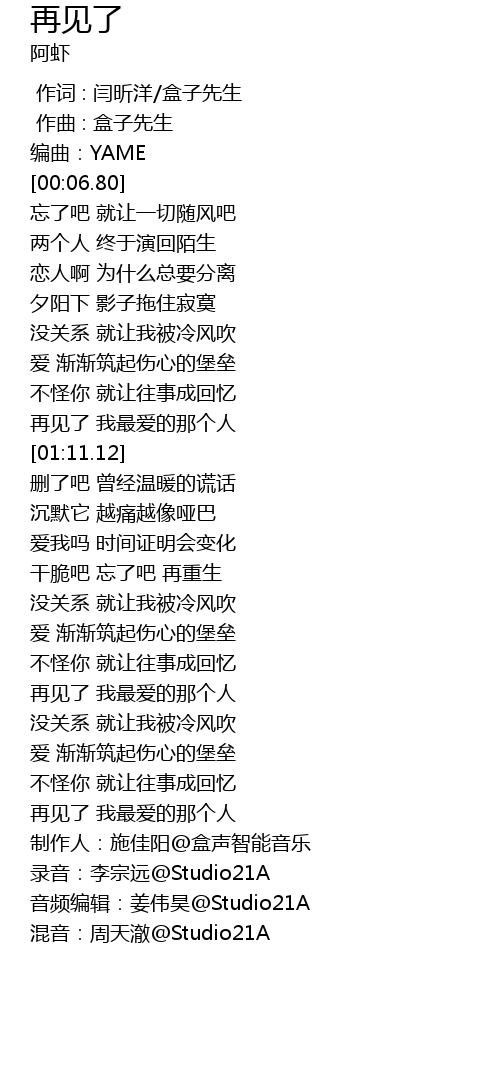 | [01:04.43] | 再见了 我最爱的那个人 |