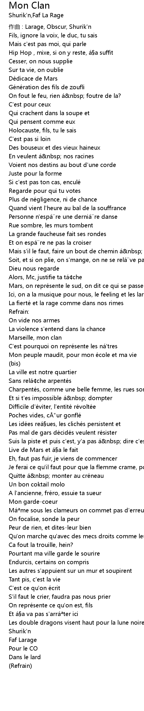 | Marseille, mon clan | |