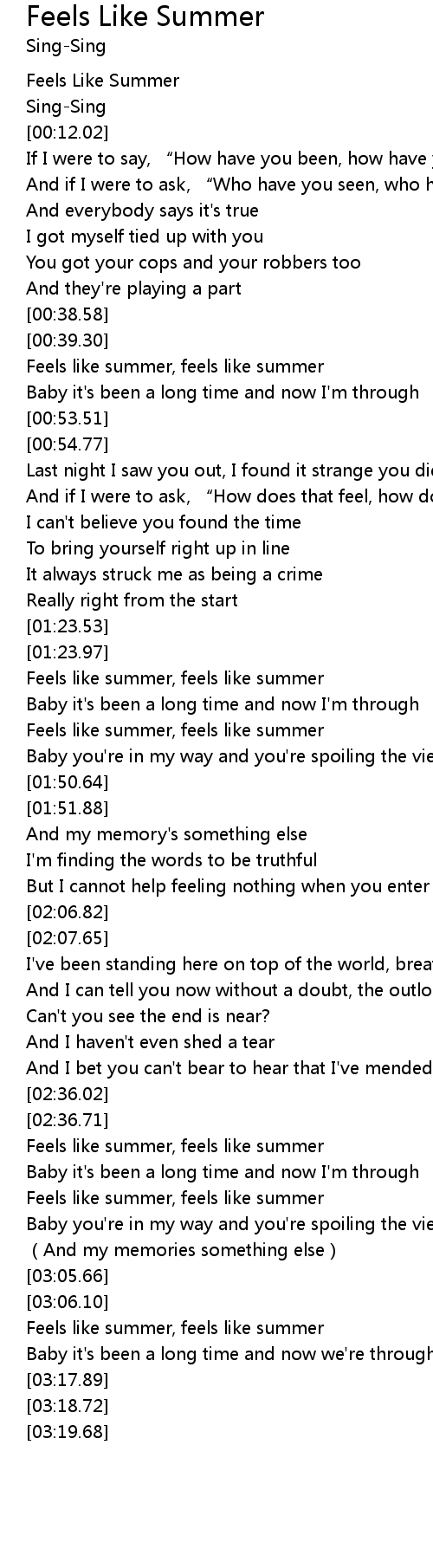 | [00:55.73] | Last night I saw you out, I found it strange you didn't appeal |