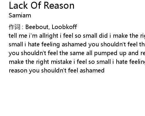 | tell me i' m allright i feel so small did i make the right mistake i feel so small i hate feeling ashamed you shouldn' t feel this way who is condescending you shouldn' t feel the same all pumped up and ready to go i feel so small will i make the right mistake i feel so small i hate feeling helpless who wouldn' t reason you shouldn' t feel ashamed |