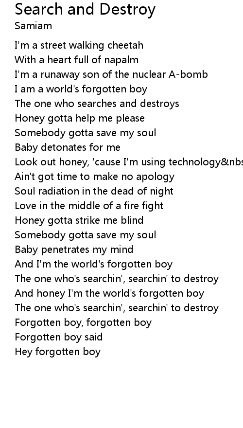 The one who's searchin', searchin' to destroy |