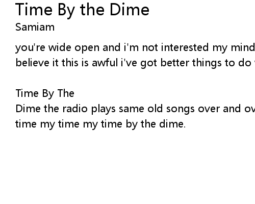 | Dime the radio plays same old songs over and over it's my time i can be home my time my time my time by the dime. |