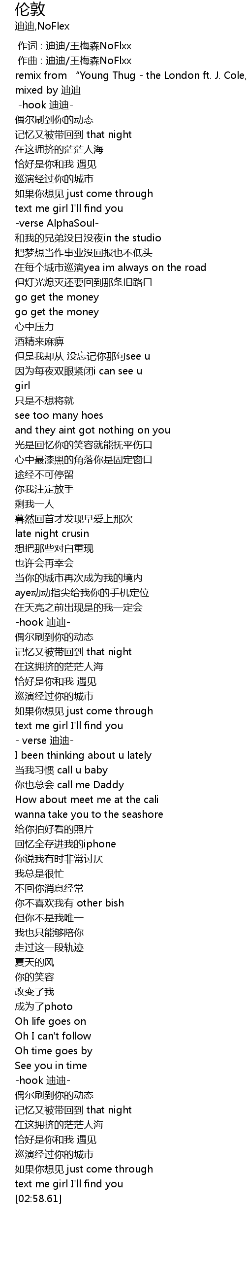 | [00:05.12] | remix from " Young Thug the London ft. J. Cole, Travis Scott" |