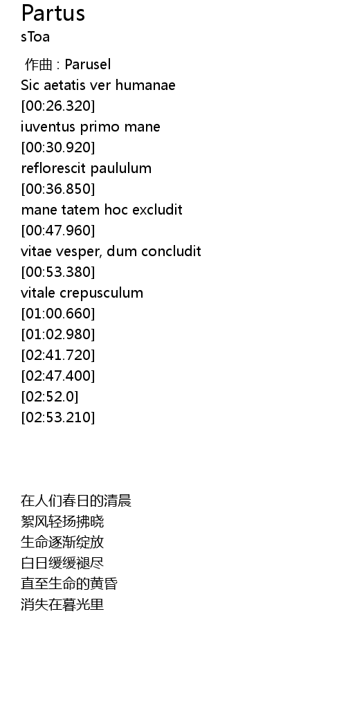 | Song | Partus |