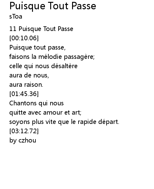 | [03:01.31] | soyons plus vite que le rapide de part. |