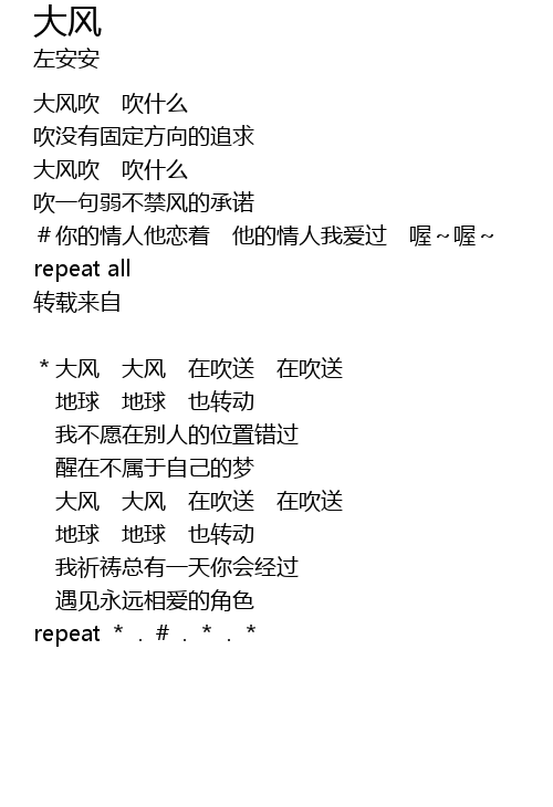 | dà fēng dà fēng zài chuī sòng zài chuī sòng | |