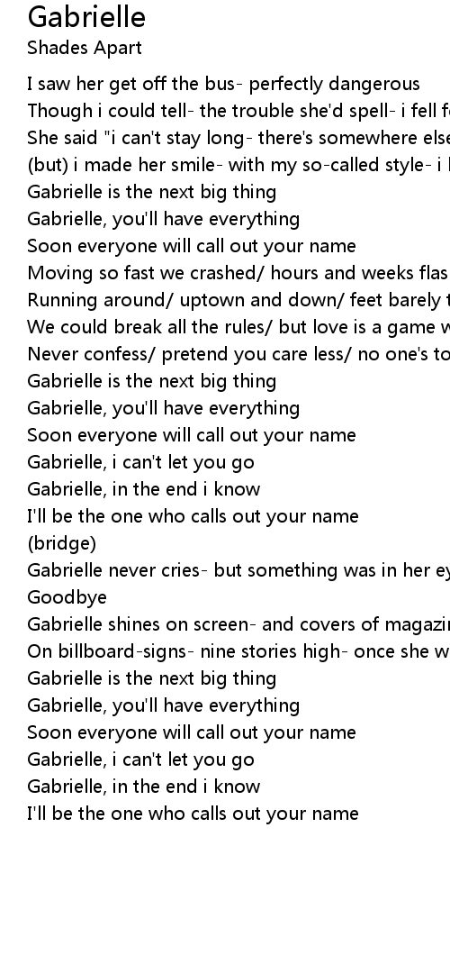 Though i could tell- the trouble she'd spell- i fell for gabrielle |