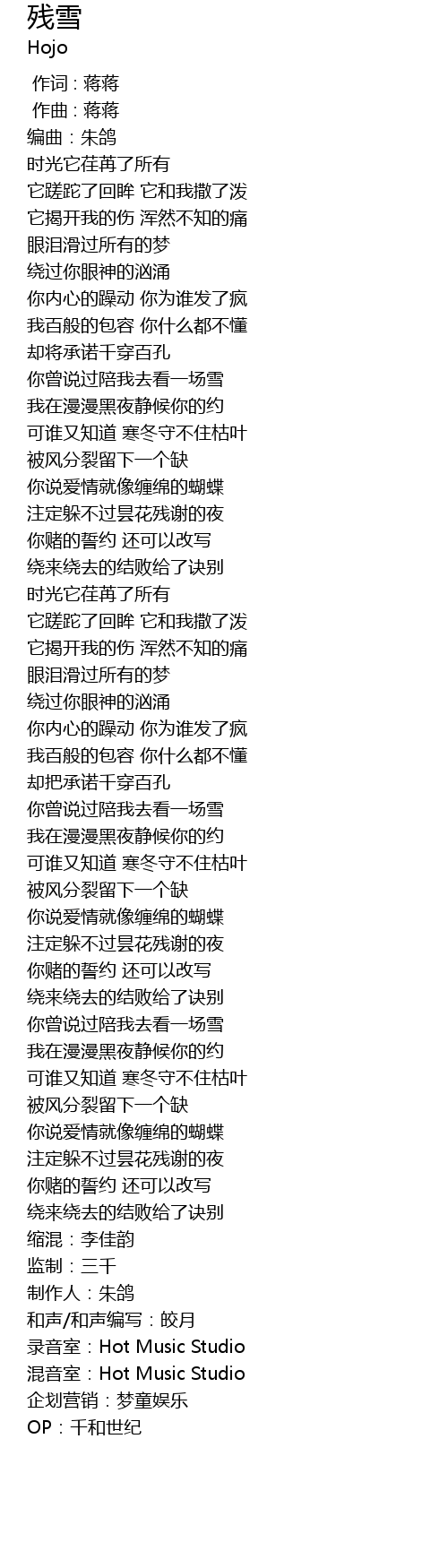 | [03:05.68] | 录音室:Hot Music Studio |