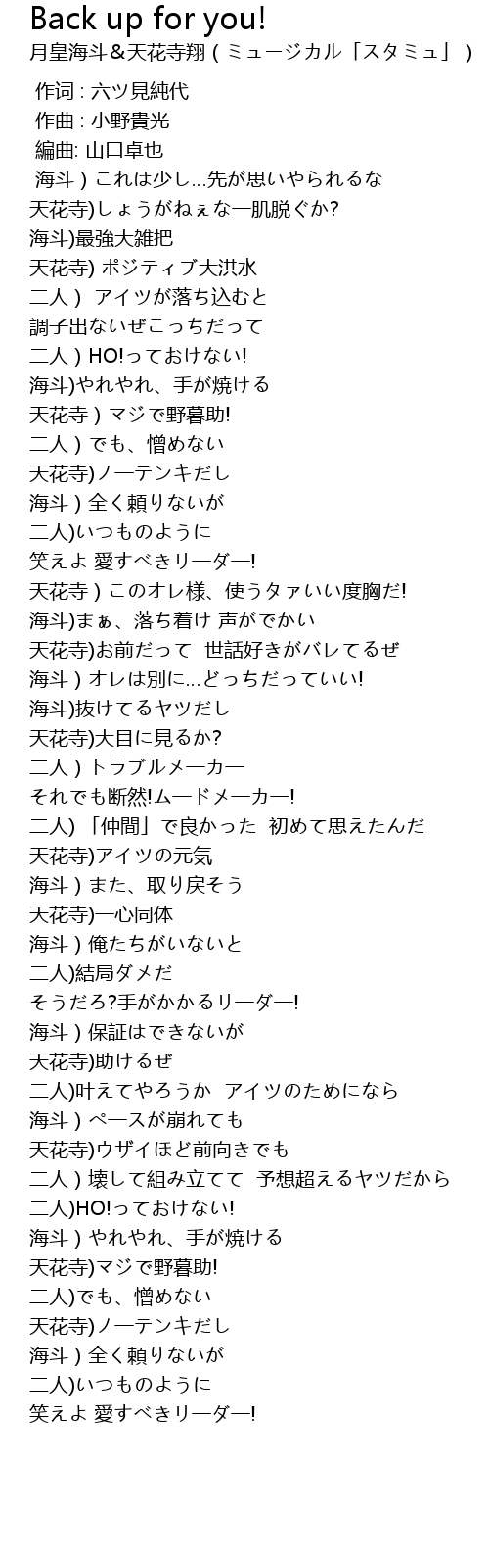 | Artist | 月皇海斗&天花寺翔(ミュージカル「スタミュ」) |