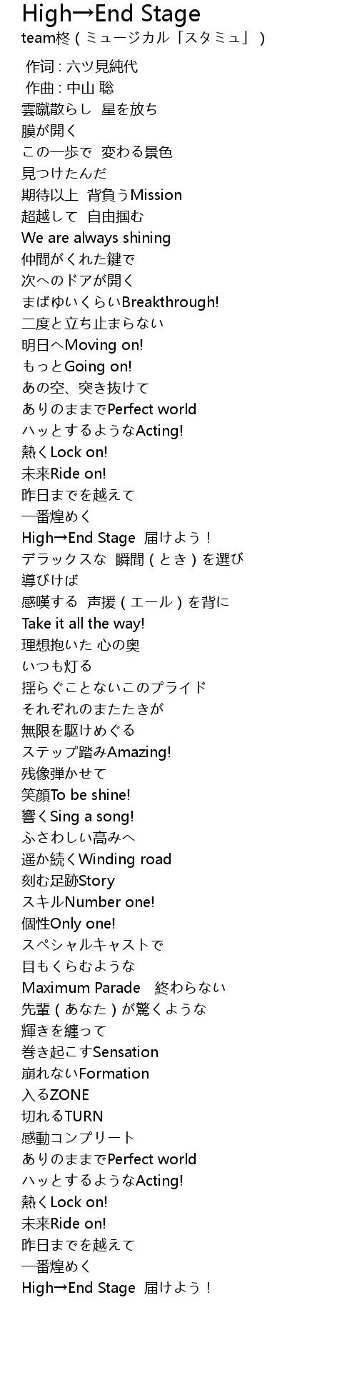 | [03:47.0] | High→End Stage 届けよう! |