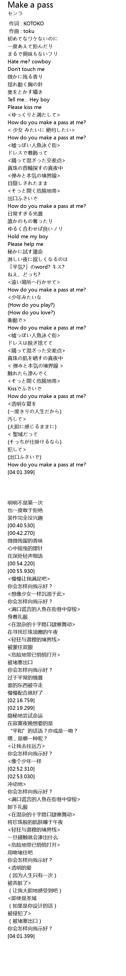 | [01:35.299] | 真珠の首輪探すの真夜中 |
