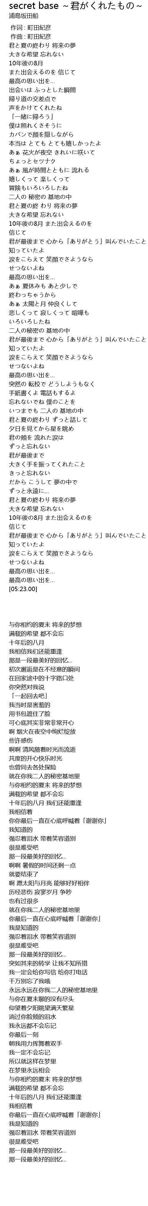 | [03:22.23] | いつまでも 二人の 基地の中 |