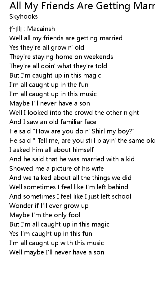 | Well all my friends are getting married | |