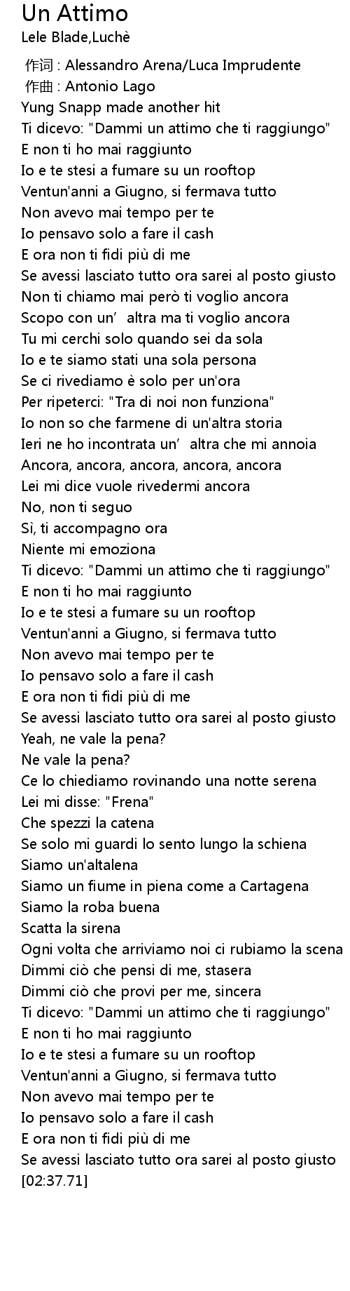 | [02:12.47] | Ti dicevo: "Dammi un attimo che ti raggiungo" |