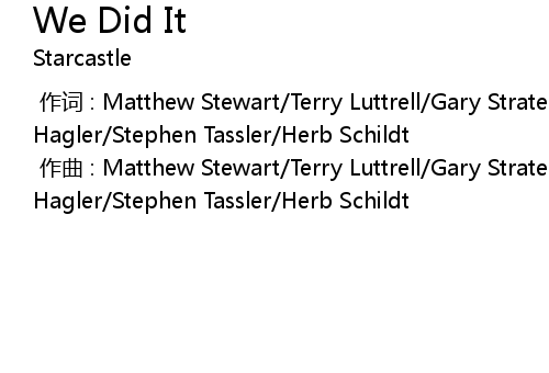 | [00:00.000] | 作词 : Matthew Stewart/Terry Luttrell/Gary Strater/Stephen Hagler/Stephen Tassler/Herb Schildt |
