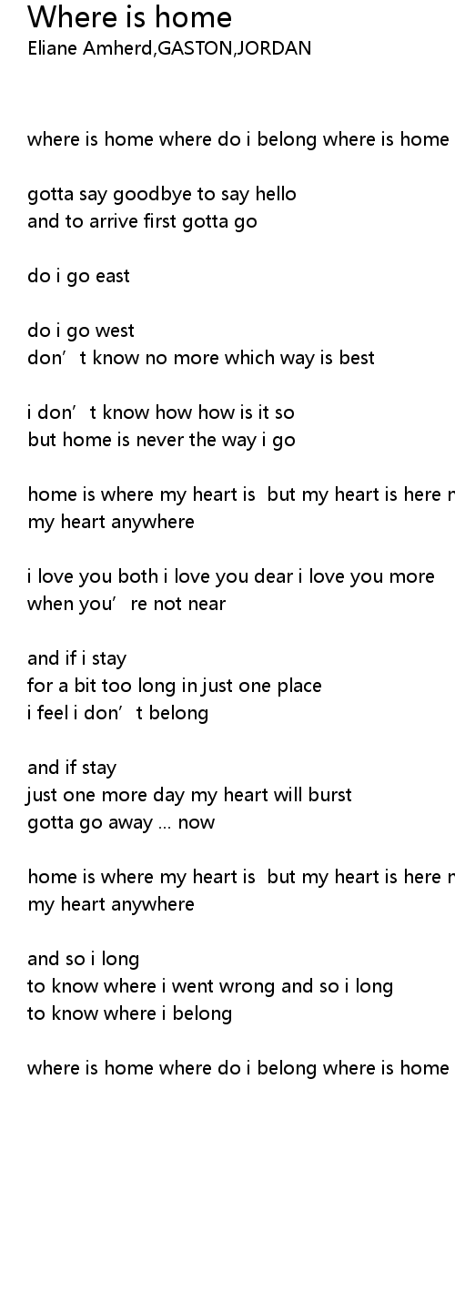 | home is where my heart is but my heart is here nor there my heart anywhere | |