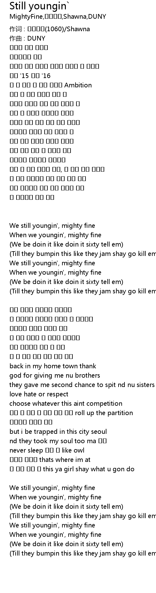 | Song | Still youngin` |