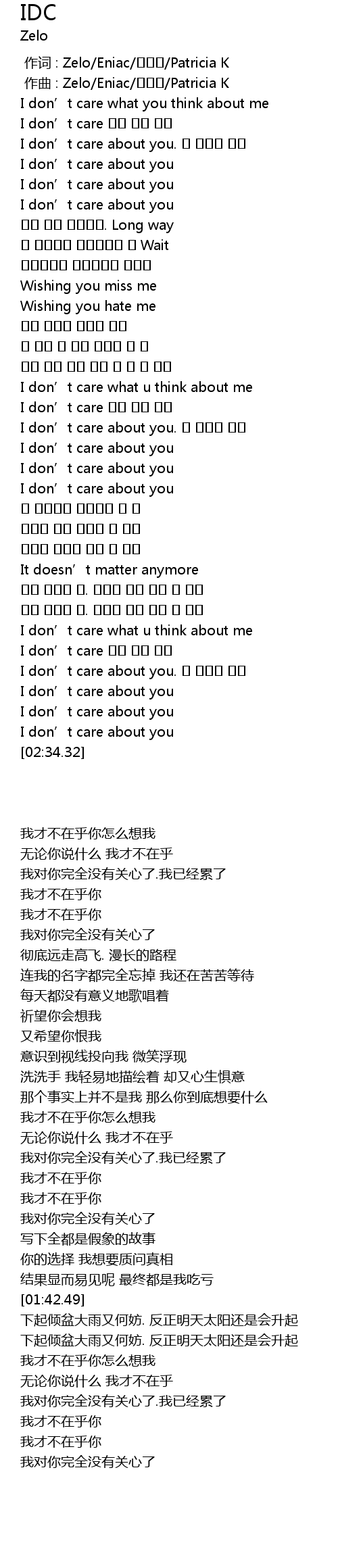 | [01:58.91] | I don' t care |